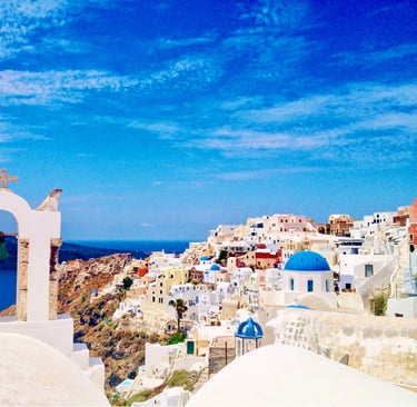 Lorsqu’on pense à la Grèce, on imagine souvent de petites maisons blanchies à la chaux perchées à flanc de falaise, des ruelles charmantes et bordées de boutiques ainsi que des dômes bleus tranchant avec le blanc éclatant du paysage. Eh bien, cette carte postale idyllique existe bel et bien : il s’agit de Santorin. Également connue sous le nom de Thira, cette île emblématique offre aux voyageurs un superbe aperçu de ce que les Cyclades ont de plus beau à offrir et donne immanquablement envie d’en découvrir d’autres.